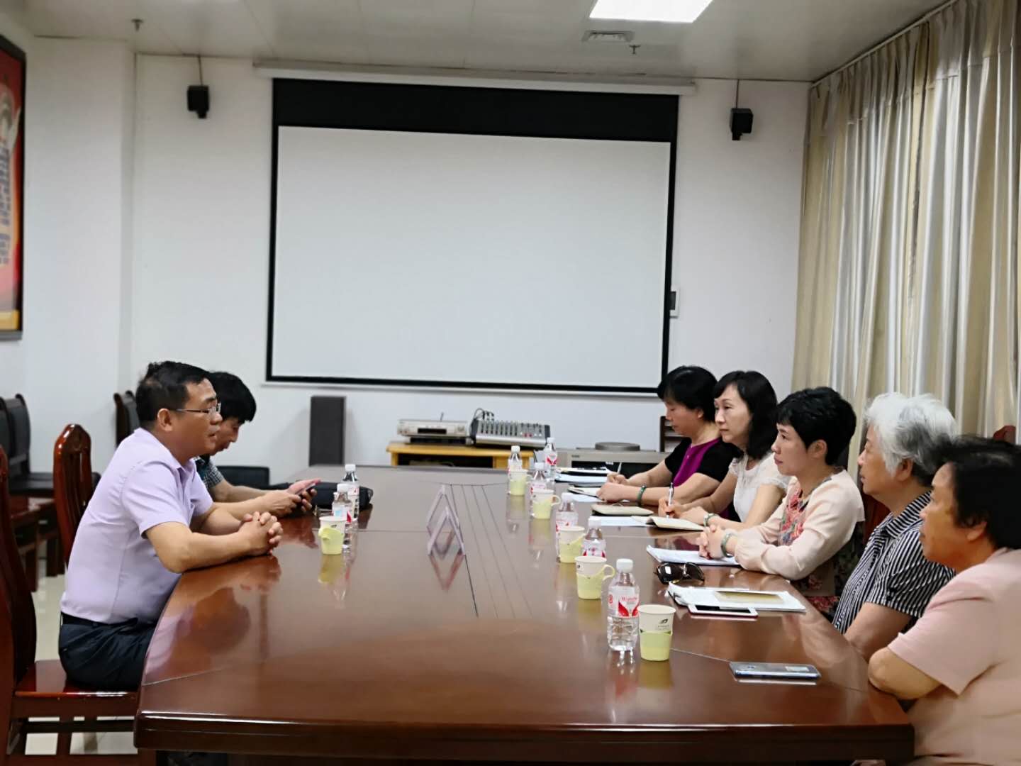 5月22日下午,自治区统战部七处处长秦伟鹏一行到点点体育进行侨联工作调研。学校党委统战部部长姜建萍、副部长邬文燕、校归侨侨眷联合会会长黄敏、副会长彭佩薇、宋港真等参与了座谈交流。