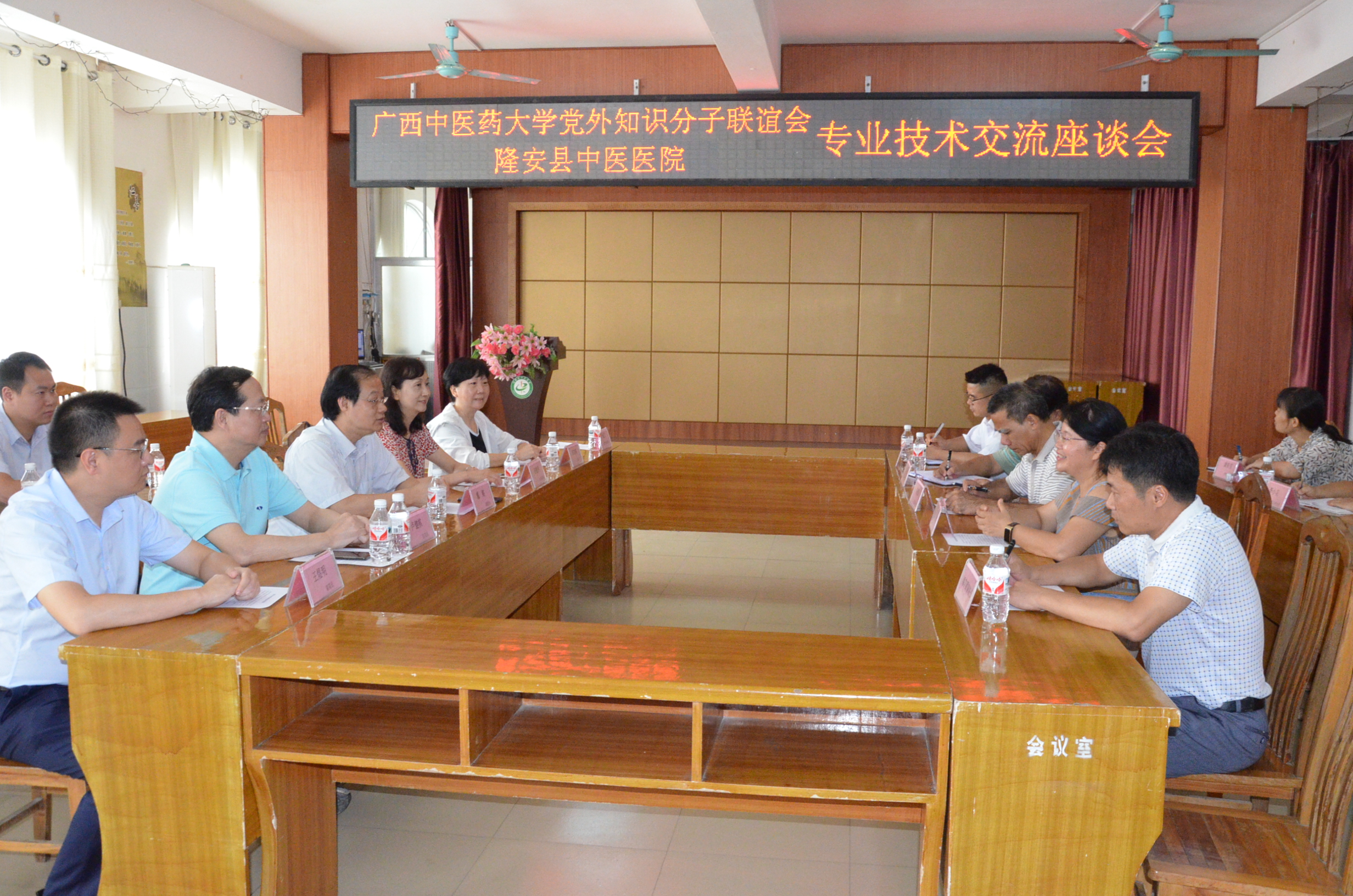 座谈会上,隆安县卫健局副书记陆建山致辞,隆安县中医医院院长农小宝介绍了医院的基本情况,双方在中医院会议室进行了亲切座谈,就隆安县中医医院的发展定位、优势学科、科室构架、人才梯队建设及政策支持等方面进行了交流,并就医院发展面临的困难及对策进行了深入探讨。