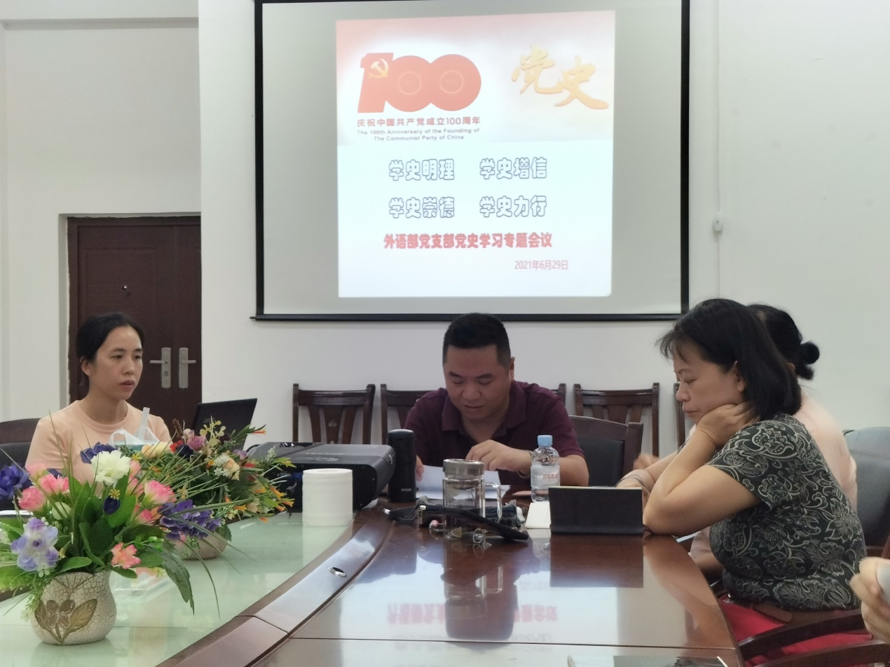 为全面深入推进党史学习教育,引导外语部教师知史爱党、知史爱国,进一步坚定信仰信念、传承红色基因、强化使命担当,做到学史明理、学史增信、学史崇德、学史力行,taptap点点体育外语部党支部采取主题发言和分组讨论、个人发言等方式,拓宽学习渠道,使教师党员做到以党史照亮前行之路、以党史洗涤心灵之尘、以党史激发奋进力量。