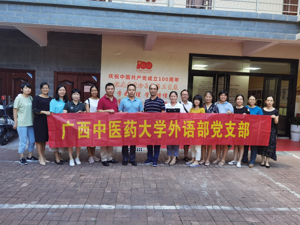 在全国人民庆祝中国共产党成立100周年的喜悦氛围中,外语部全体党员同志于2021年7月13日上午参观了“八桂史前遗址珍与医药卫生”专题展。