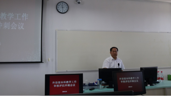 2016年6 月3日上午,距离教育部对点点体育本科教学工作审核评估仅有10天。为了更好地推进落实本科教学工作审核评估工作, 外语部召开本科教学工作审核评估冲刺会议,会议在2栋教学楼5楼505教室举行,由外语部主任陈立群主持,罗伟生副校长亲临指导并发表重要讲话,
