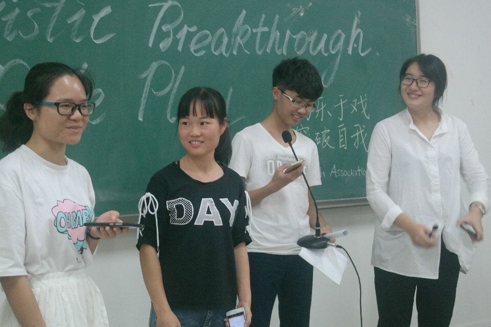 “性格突破”活动 发布时间:2017-10-13 09:48:40 浏览次数: 次 【字体:小 大】 “性格突破”活动介绍 “性格突破”活动,是由英语协会CMB电台举办的以“愈乐于戏,突破自我”为主旨的外语角色扮演活动,让同学们在角色扮演中,既能享受表演带来的乐趣,也能在提高对英语的掌握。 角色扮演之戏剧——《灰姑娘》 现场视频配音 活动结束后颁奖 分享到: 【打印正文】