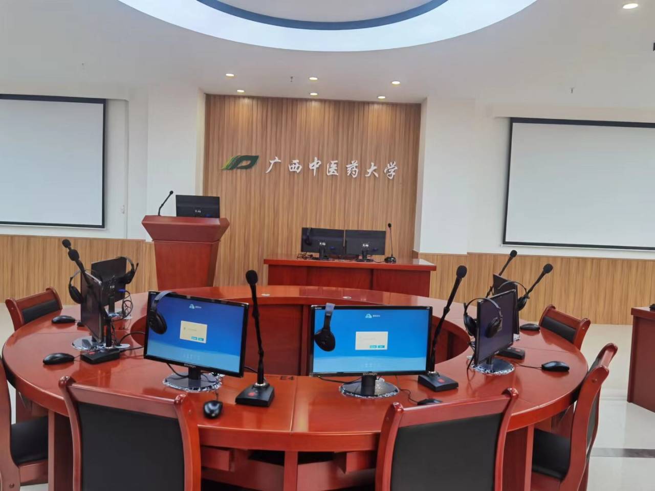 随后,由专业技术人员进行实验室操作培训。培训会内容分为三个部分:一、专业化同声传译训练系统;二、计算机辅助翻译软件系统;三、大学英语AI一体化教学云平台。通过此次培训,技术人员较为全面地展示了大学英语教学系统、同声传译教学系统和会议系统。