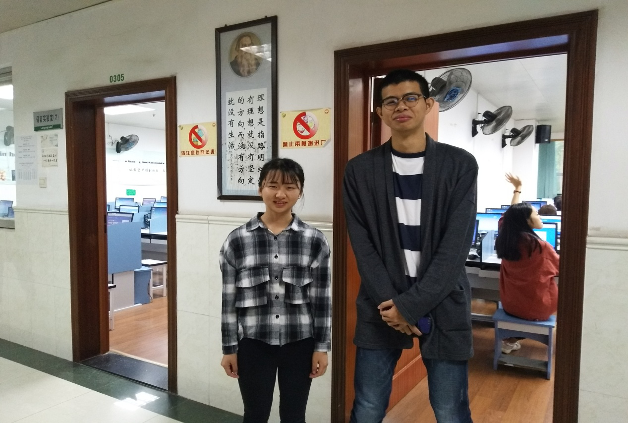 图为参加写作大赛的何春燕、杨曼凯同学