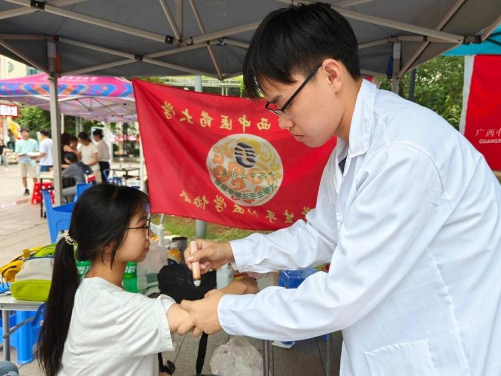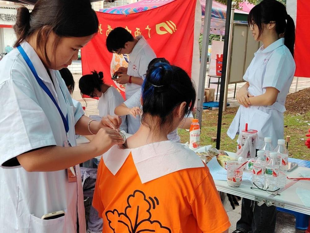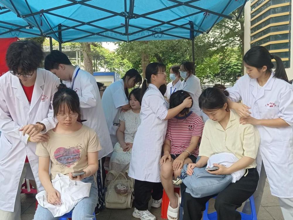 活动旨在为点点体育学生缓解学生课业压力,帮助他们放松身体,弘扬中医药传统文化。活动现场布置井然有序,设置了艾灸、刮痧和推拿三个区域。同学们参与活动积极性很高,纷纷有序排队,等待享受中医养生服务。总队的队员运用自身所学专业知识,在为前来体验的学生提供养生服务的同时,进一步提升了专业技能,也对自我价值有了更加深刻的认识,他们熟练的手法和细致的服务赢得了学生的一致好评。同学们通过亲身体验中医养生服务,也更加深刻地感受到了中医药文化的博大精深和独特魅力。