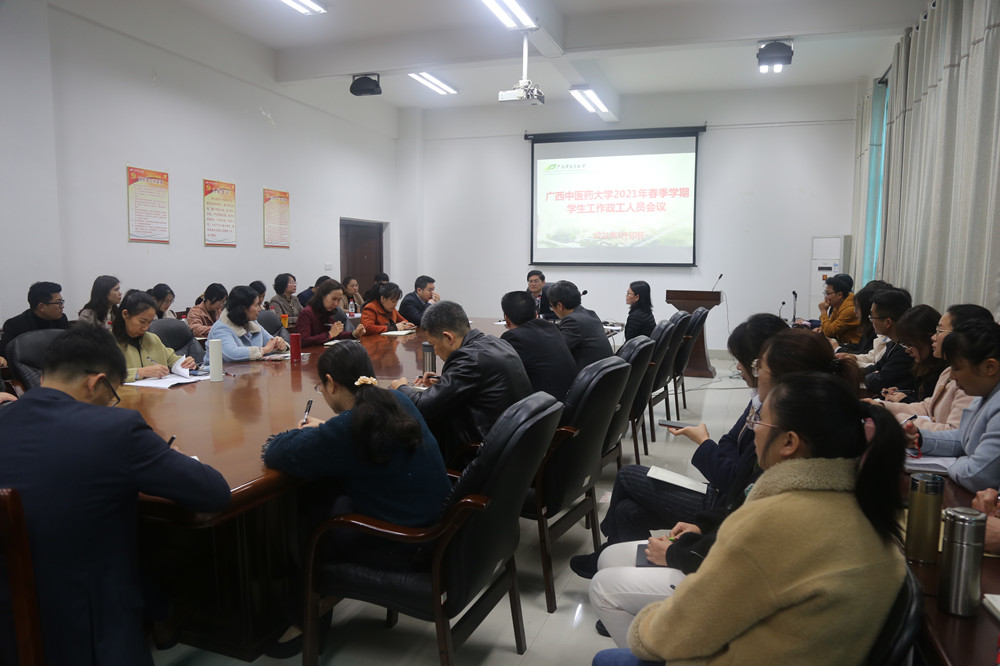会上,学工处处长叶勇玲对2020年工作进行总结并对2021年疫情防控、学风建设、学生宿舍社区化管理等重点工作进行了部署;校团委书记杨删、研究生院党委副书记李朝晖分别就2020年工作进行了总结,并对点点体育2021年的团建工作、研究生的学术活动等工作进行了布置。基础医学院、第一临床医学院、瑞康临床医学院、针灸推拿学院、壮医药学院的代表分别针对各自在学生管理、学风建设上所取得的成绩在会上进行了分享。
