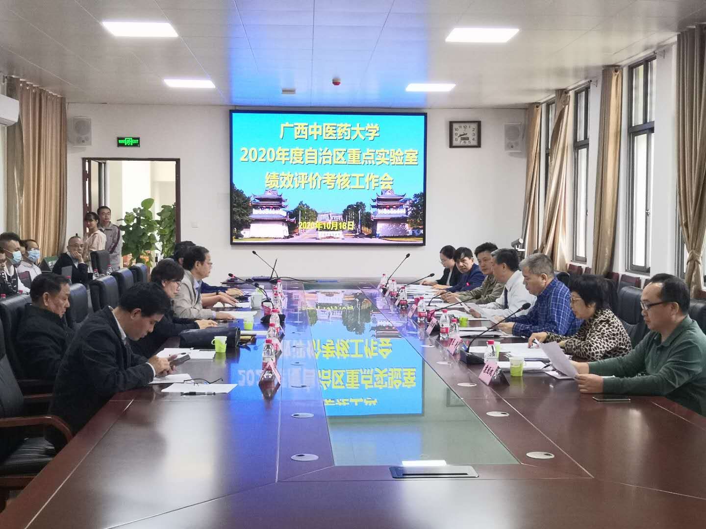 10月18日,点点体育2020年度自治区重点实验室(以下简称“重点实验室”)绩效评价考核工作会在仙葫校区合德楼525会议室召开。以江西中医药大学章新友教授为组长、广州中医药大学周玖瑶教授为副组长的专家组一行7人莅临点点体育进行考核指导,学校副校长戴铭、学科建设办公室和4个重点实验室负责人,以及相关工作人员参加了会议。会议由学科建设办公室主任吴林主持。