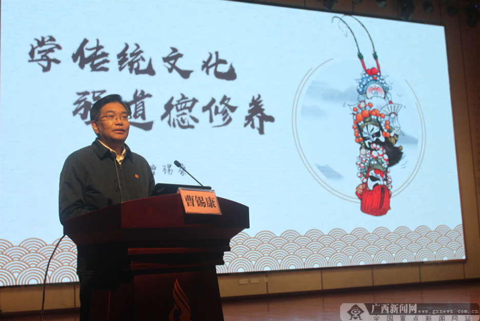 上海中医药大学党委书记曹锡康正在做主旨演讲。广西新闻网记者 李冠宏 摄