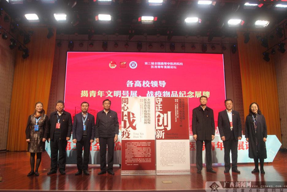 第三届全国高等中医药院校医务青年发展论坛主题揭牌仪式。广西新闻网记者 李冠宏 摄