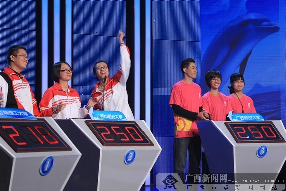 taptap点点体育代表队抢得最终的答题权,冠军在望乐不可支。广西新闻网记者 邓昶摄