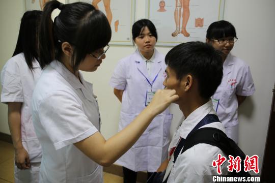 在台湾没有见过点线疗法,这边的分科很细,很多都是台湾没有的。一名来自台湾慈济大学中医药专业准大四学生陈玮莹告诉记者。