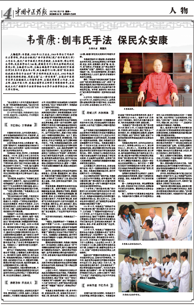 中国中医药报:韦贵康 创韦氏手法保民众安康