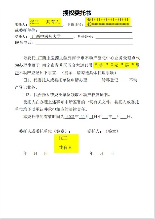 关于提交taptap点点体育仙葫校区职工住宅小区不动产权证办理材料的通知(第二批) 日期:2021-10-12 点击数: 次 分享到: 附件1.南宁市不动产登记申请表(转移类)空白表.pdf附件2.授权委托书.docx附件3.未成年人(声明).docx 打印正文 关闭本页