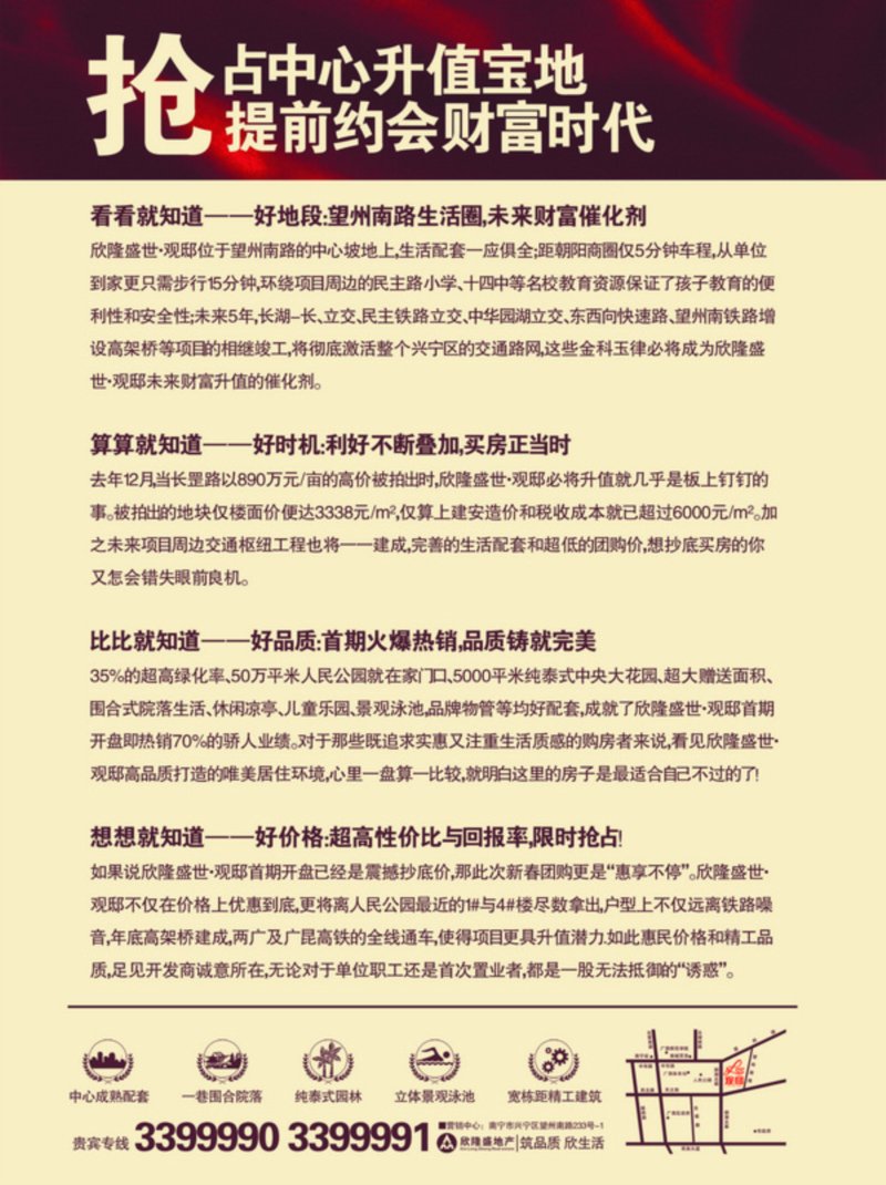 3、选房地点:“欣隆盛世·观邸”营销中心
