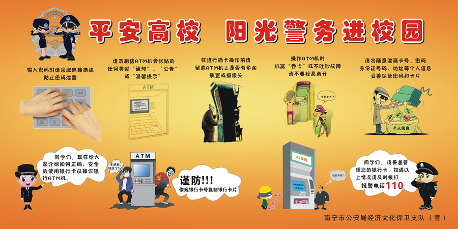 [图片]平安春运 平安校园——校园安全相关知识 来源:武装保卫部 作者:武保部 日期:2013-01-24 点击数: 次 分享到: 相关链接: 南宁市公安局高校安全守望室:http://blog.gxnews.com.cn/blog-124452.html 打印正文 关闭本页