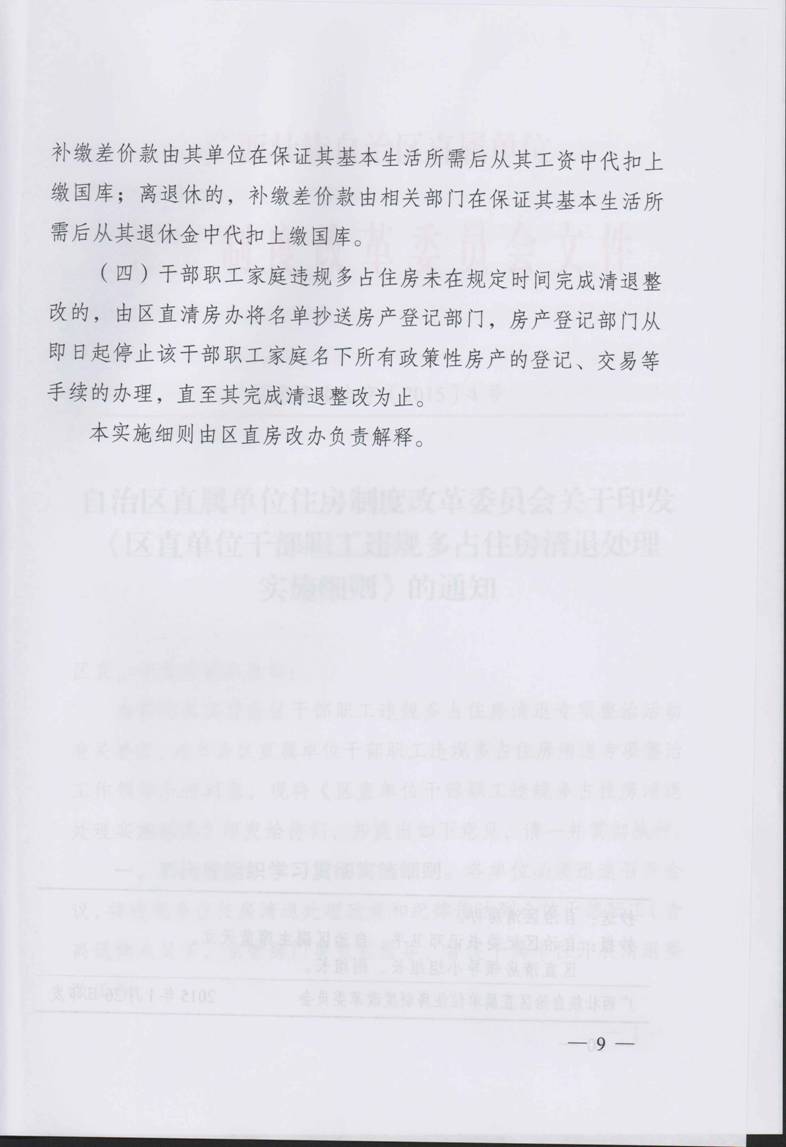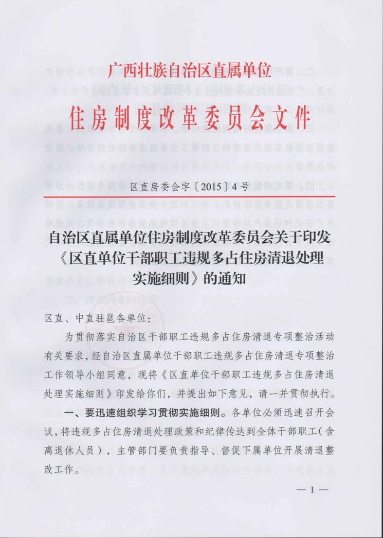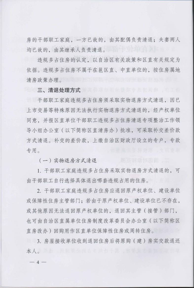 自治区直属单位制度改革委员会关于印发《区直单位干部职工违规多占住房清退处理实施细则》的通知
