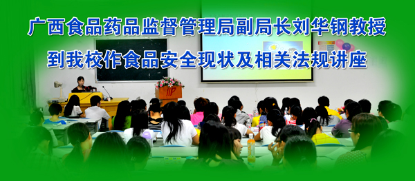 11月6日晚,广西区食品药品监督管理局副局长刘华钢教授在广西中医学院西B-2教室为该校食品科学与工程专业学生作关于我国《食品安全现状及相关法规》的讲座。