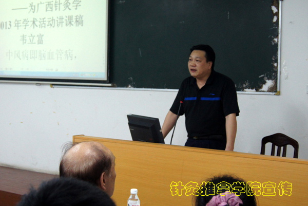 韦老讲座的题目是“朱琏针灸手法治疗中风病”。他以中风病为例,贯穿朱琏针灸治疗指导思想的特点,指出针灸治病的三个关键:刺激的手法、刺激的部位和刺激的时机。