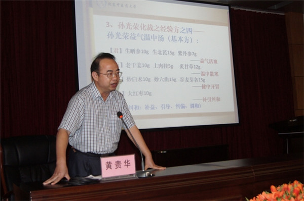 黄贵华院长最后总结,孙教授为我们上了一堂精彩绝伦的中医经典课。孙教授结合自己的学术思想及临床诊疗用药经验,深入浅出地讲述了如何总结名老中医的学术经验。如何学习名老中医的临证思辨特点,使我们深受启发。希望大家通过此次讲座真正懂得如何去继承与创新名老中医学术思想,使中医药事业更加蓬勃发展。