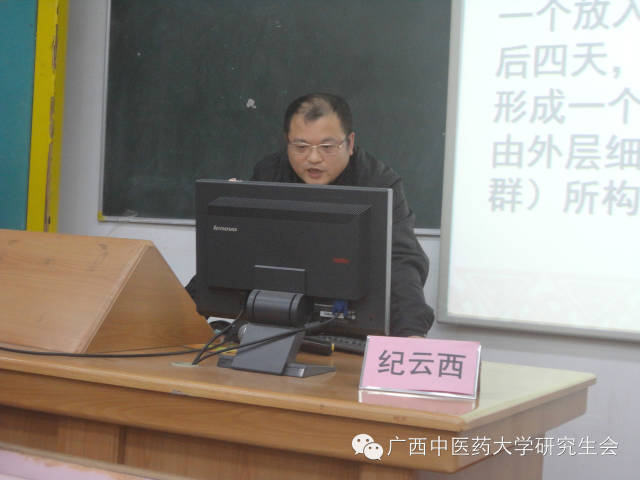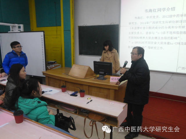 2015年1月10日下午,点点体育研究生学院创新论坛系列活动——“学位论文开题报告及科研课题申报标书的撰写要求与技巧” 专题讲座在明秀校区西梯一教室举行。点点体育第一附属医院科研部副主任纪云西博士和2012级中药学专业研究生韦海红同学受邀分别进行授课和经验交流。