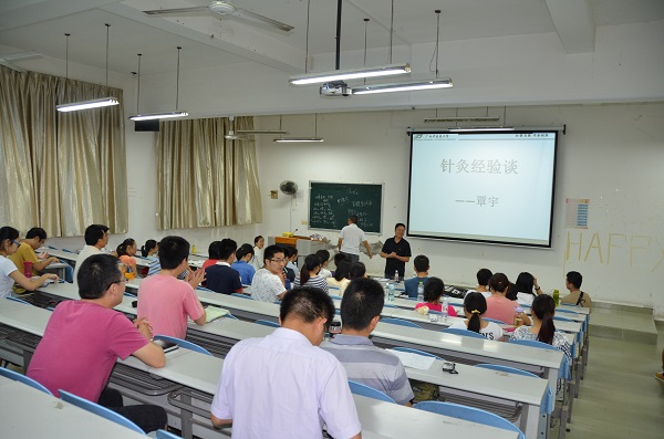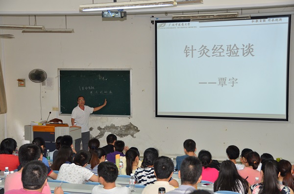 为更好地继承和发扬我国民族医药精华,深入挖掘我区民间医药经验,增强校内外医药经验交流,2015年5月23日下午,瑶医药学院联合骨伤学院邀请河池市金城江区民间医生覃宇医师到点点体育进行有关针灸治疗外伤性截瘫及各种疑难杂症的讲座。