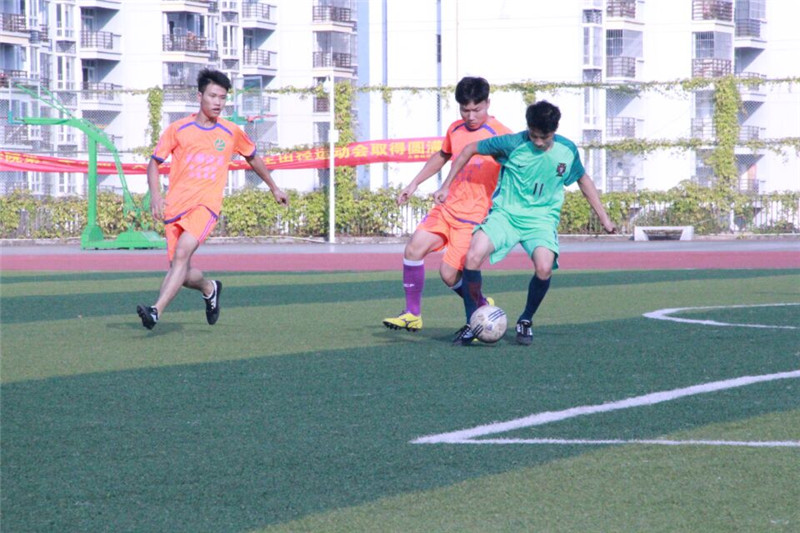 阳光明媚,温度上涨,伴随着同学们的热情和对本次比赛的渴望。双方球员都已做足准备,哨声响起,球员迅速反应使出全力争夺第一球,你拼我抢很快就进入了状态。球员那迅速的假转身,顺利的把球传到了靠近球门的队友那里,打起十二分精神的队友提起脚尖把球成功的射进了球门。观众的掌声和呼声祝贺了高职院以1:0领先,他们用努力的汗水拉开一分之差而取胜。