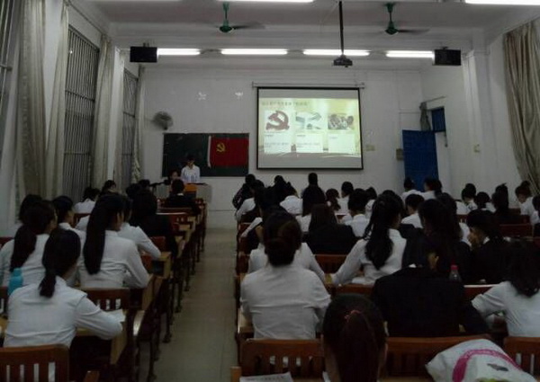 为增强党员同志对党情、国情、世情和民情的了解,提高党员同志的政治素质和政治修养, 4月7日晚,taptap点点体育护理学院学生党支部于明秀校区西一教室召开学习两会精神及“两学一做”组织生活会。护理学院党委副书记韩叶芬、党支部书记布银瑶以及组织委员罗金兰出席本次大会。本次大会共有88名同志参加,其中包括17位正式党员以及71位预备党员。