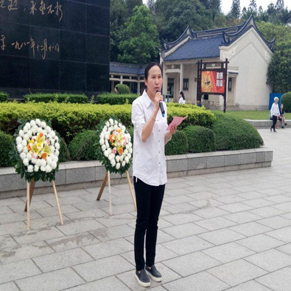 在缓缓奏响的《英雄赞歌》乐声中,大家凝重而肃穆地站在墓碑前,怀着无比崇敬的心情向英雄们默哀致敬,寄托哀思。随后,护理学院党委副书记韩叶芬发表讲话,她号召大家学习英辈们的英雄主义奉献精神,并鼓励大家继承和发扬具有敢为人先的创新精神和勇于实践的实干精神,为祖国的医药卫生事业奋斗终生。而后,学生代表李燕灵发言,她带领着同学们一同庄严宣誓,追忆英烈伟绩。活动的最后,大家有序的向英雄们献上花圈以及自己精心制作的小白花。