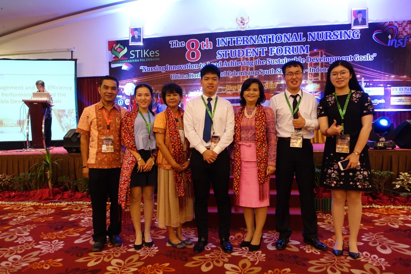 为进一步推进taptap点点体育护理学专业的国际交流,拓宽护生的国际视野,taptap点点体育护理学院于2017年5月2日至5月4日资助2013级护理学(英语方向)的胡宁丹、梁清苑,2014级护理学伊默、周帅4名本科学生赴印度尼西亚巨港市参加“第8届国际护理学生论坛”(INSF)。本次论坛由泰国孔敬大学护理学院主办、印度尼西亚STIKES Muhammadiyah Palembang大学承办,吸引了来自印度尼西亚、中国、泰国、马来西亚、澳大利亚、新加坡等多国高校师生代表参会。
