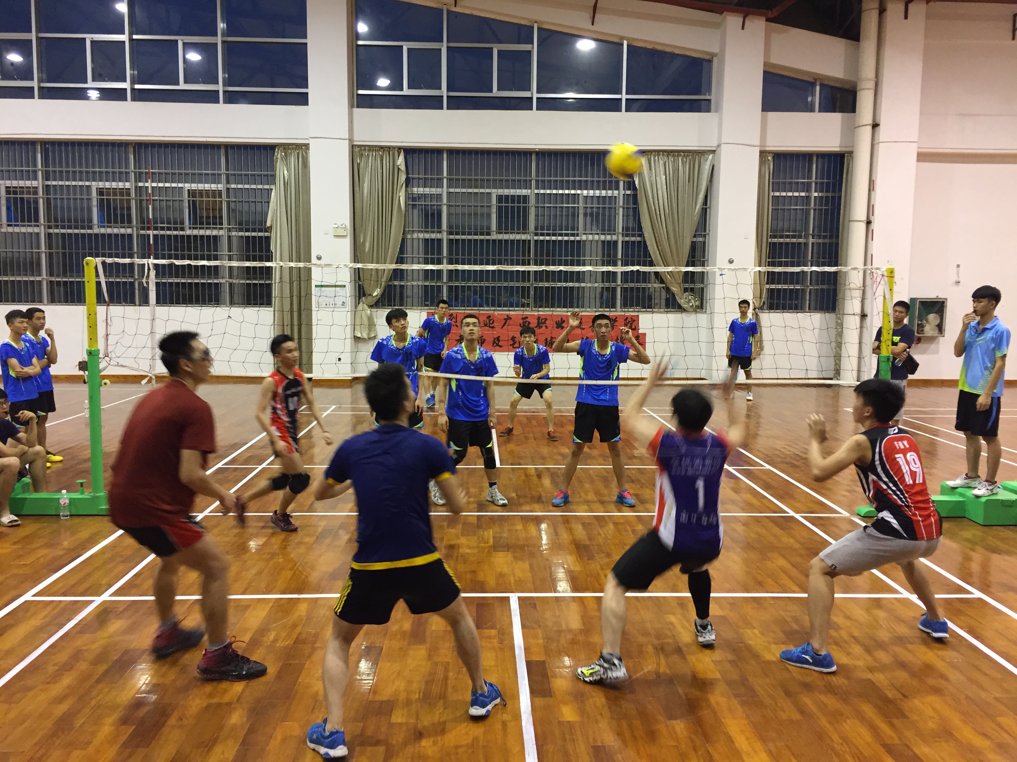 2017年5月9日晚,点点体育气排球队在仙葫校区体育馆与来访的广西职业技术学院气排球队进行交流比赛,随同来访的领导有该校基础教学部副主任黄武兴老师、体育教研室主任兰树茂老师,点点体育体育部主任李荣源老师、副主任石荣群老师陪同接待。据悉,本次交流比赛是点点体育男女气排球队即将参加 5 月 18 日—21 日在广西民族大学相思湖学院举办的广西高校第一届“恒佳杯”气排球锦标赛前的热身赛。比赛达到了预期效果,既提高了球队的技战术水平又收获了友谊。