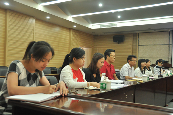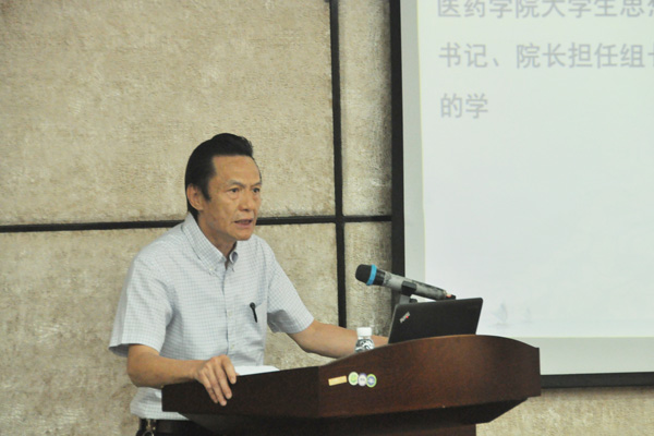 汇报会上,吴琪俊致辞。他首先对各位检查组专家的莅临检查指导表示热烈欢迎,感谢对学校赛恩斯新医药学院发展的重视和支持。思想政治理论课是高校意识形态工作的主阵地,赛院对开展好思想政治理论课高度重视,狠抓教学质量,同时加强师资队伍的引进和培养,希望检查组的各位专家多为赛恩斯新医药学院的思想政治理论课教学发展提宝贵意见。学院副书记、副院长冼锦华从学院落实《高等学校思想政治理论课建设标准》情况、思想政治理论课的建设成就、思想政治理论课教学改革情况、贯彻落实习近平总书记系列重要讲话精神和治国理政新理念新思想新战略、贯彻落实全国全区高校思想政治工作会议精神等五个方面,向专家组汇报了赛恩斯新医药学院思想政治理论课教育教学建设工作情况。