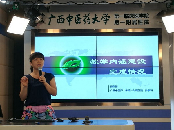 2017年6月9日,第一临床医学院在医院第一生活区教学楼录播室对5月份服务教研室内涵建设的6名临床教师进行了答辩考评,参加答辩的临床老师分别是来自中内教研室的杨杨老师、推拿教研室的何贤芬老师、西外教研室的林雅丽老师、口腔教研室的朱志超老师、西内教研室的谭庆晶老师和林飞老师共6名,参加答辩的评委有医院党委副书记、副院长钟远鸣,人力资源部主任谭丽云、副主任邱慧,教学部副主任杜娟娇、专业建设办公室副主任区锏,中外教研室主任张力、病理教研室主任张锡流、中内教研室副主任黄鸿娜,以及分别来自明秀校区和仙葫校区的2名学生代表共10人,此外,出席答辩考评会的人员还有来自临床各教研室秘书和任课教师约30人。