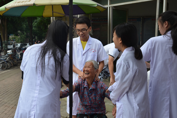 在义诊的过程中,有一位老奶奶见到前来义诊的同学们十分高兴,笑着称赞同学们的推拿手法技术好,为她缓解了身体的不适,同学们也开心地与老奶奶聊家常,并依据老人家的身体状况,在她的日常生活及饮食方面提出了需要注意的问题。