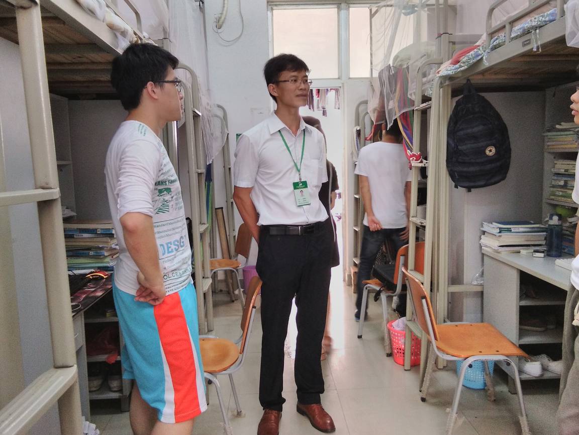为确保暑假期间学生宿舍安全,药学院学办主任凌勇威老师和药学院团委书记黄鑫老师带领药学院团委学生会成员于2017年7月12日上午对药学院学生宿舍进行安全卫生检查。