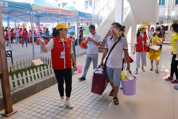 志愿者们热情接待新生及家长