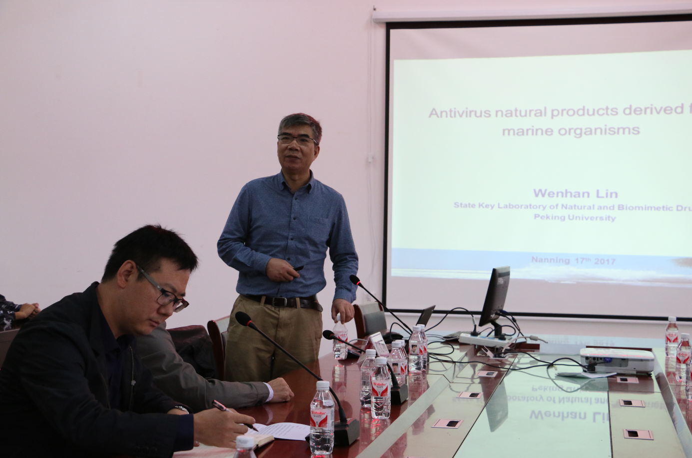讲座以“在海洋微生物中寻找抗HIV活性分子”为主题,林文翰教授从活性化合物的筛选、结构推断及确证和药源性的问题等多方面详细解读海洋药物发现的全过程,与参会人员分享了个人的科研理念和科研方法,现场气氛活跃,讨论热烈,掌声此起彼伏。