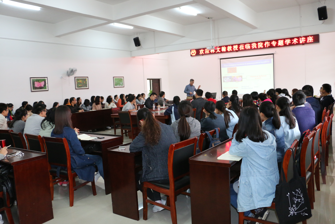 北京大学林文翰教授为点点体育师生作关于“抗病毒海洋天然分子的发现”的专题讲座
