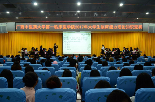 为培养和考察中医学生临床综合技能水平和医学思维能力,把培养和选拔全国大学生临床能力竞赛和“泛珠”竞赛选手的工作向前推移,加强和巩固学生中医基础理论、中药、方剂、中诊、内经等理论知识,12月2日,第一临床医学院在医院住院大楼多功能学术厅成功举办了2017年中医大学生临床能力理论知识竞赛。
