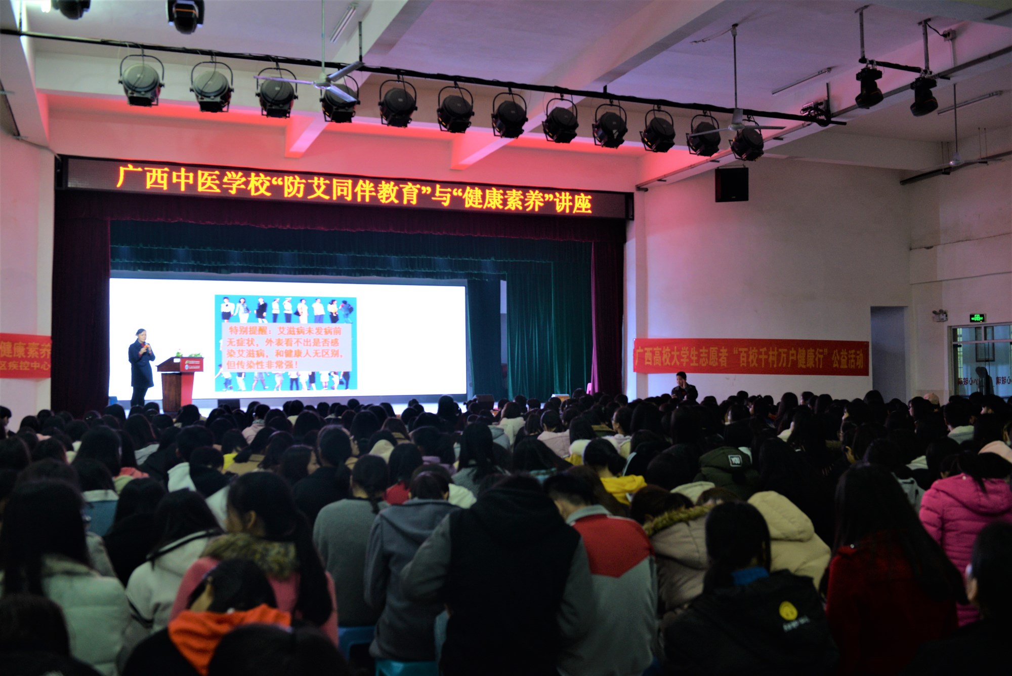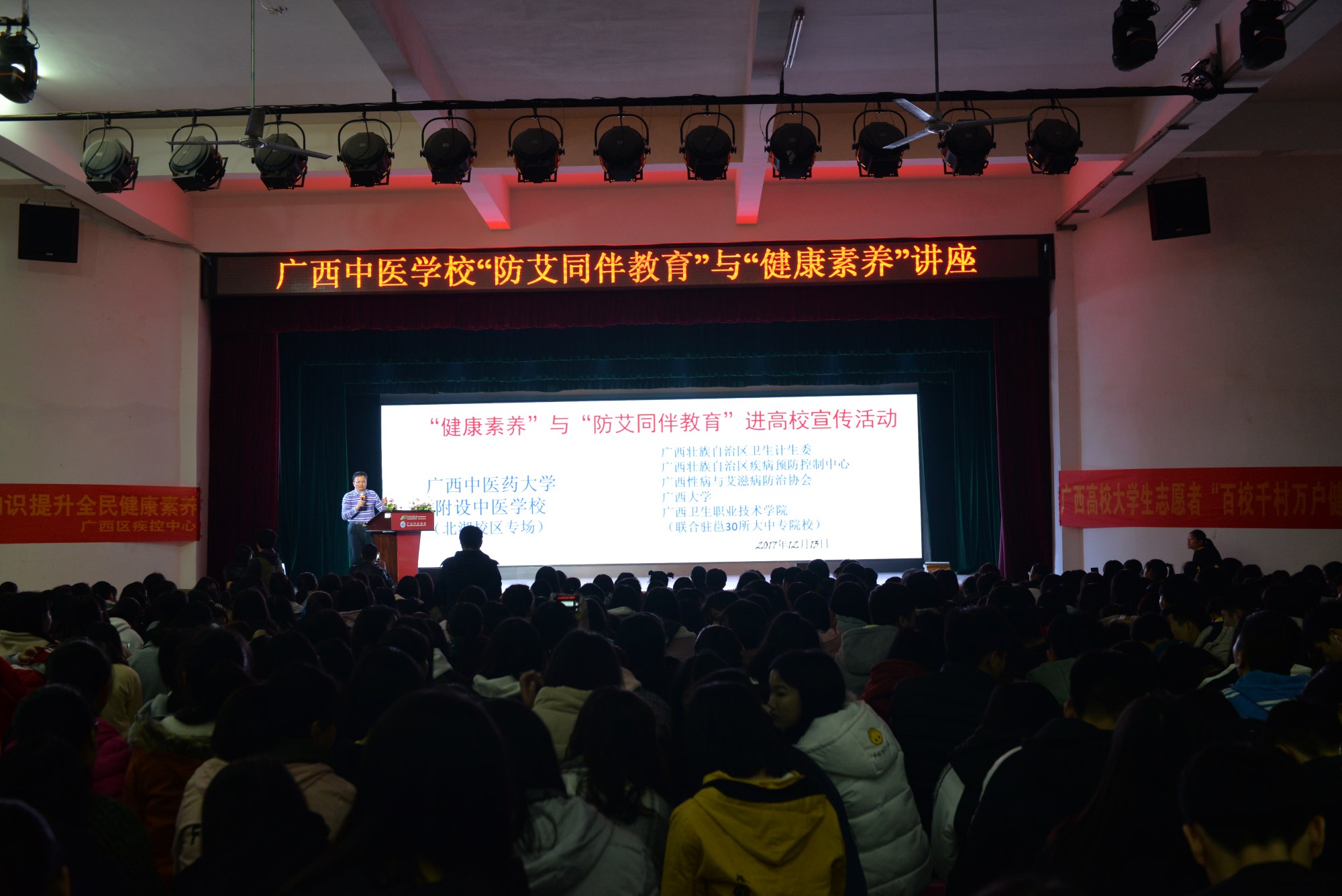 2017年12月1日是世界第30个“世界艾滋病日”,为了更好地落实和执行党和国家的艾滋病防治政策,也为了让学校的学生了解艾滋病的基本常识、增强学生自我保护能力,12月13日晚,广西中医学校联合自治区卫生与计生委、自治区疾病预防控制中心和自治区计划生育协会举办的“防艾同伴教育”与“健康素养”讲座在北湖校区大礼堂隆重举行。