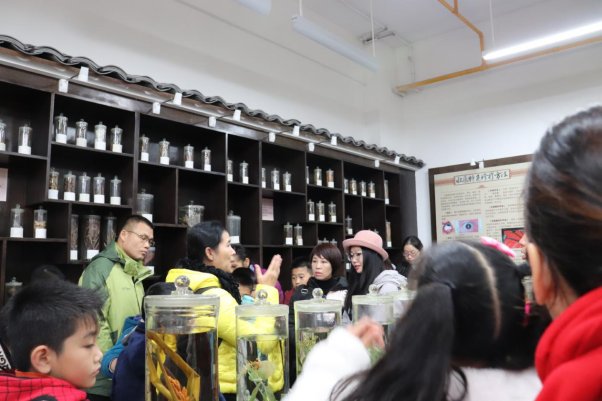 韦杏在壮医文化展厅为大家讲解了壮医药特色,让孩子们了解壮医文化的起源、发展历史,常见的壮药名称、作用及使用方法,为小学生们揭开了壮医的神秘面纱,培养了小学生对民族医学的兴趣爱好。