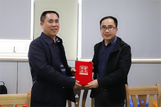 陈日兰则以其多年开展学生工作的实务经验,从学生工作的定位、工作的总体思路、注重学生安全稳定以及学生工作规律性等四方面,深入浅出地阐述了如何提升学生工作的实效性,并宣读我院2016-2017上学年优秀班主任的表彰文件,唐友明为优秀班主任章晓云,梁明坤颁发荣誉证书。
