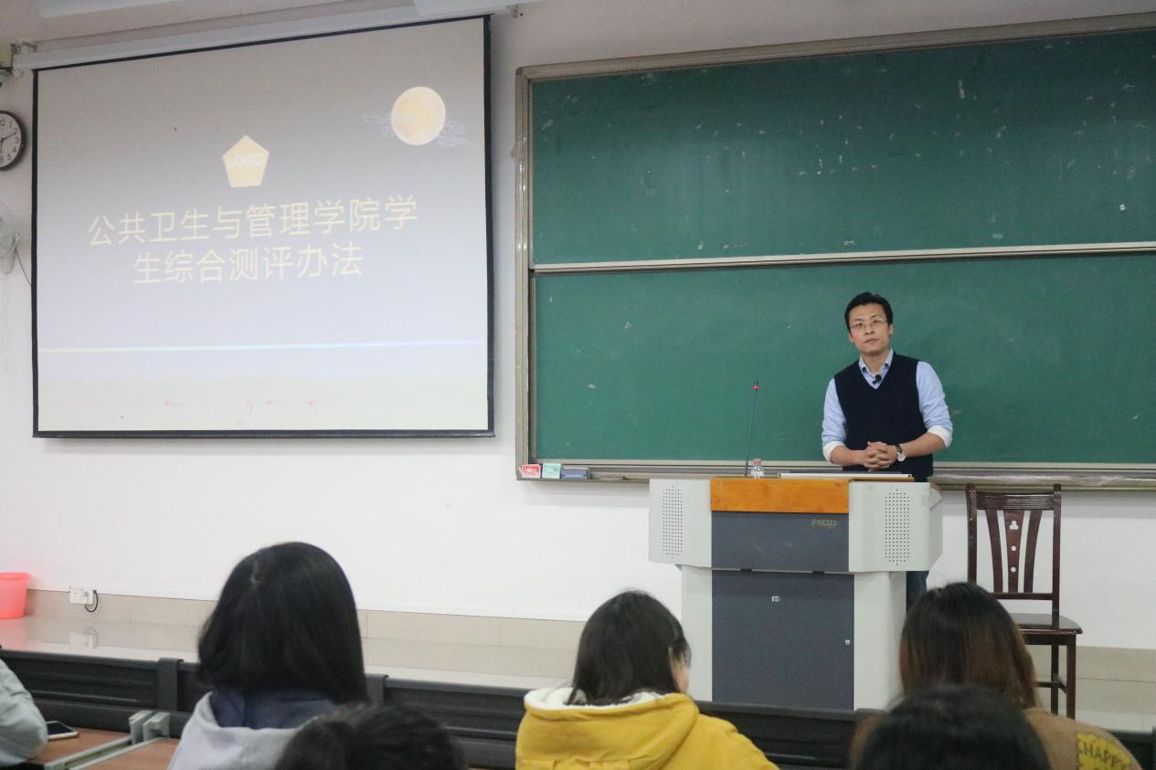 3月11日,公共卫生于管理学院学生工作办公室在仙葫校区1-201教室开展新学期全院学生教育大会。大会由院学办主任宋南主讲,全体在校大学生参加。