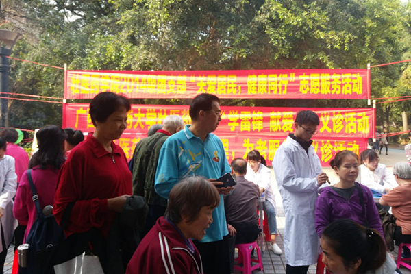 志愿者为老人测血压、血糖