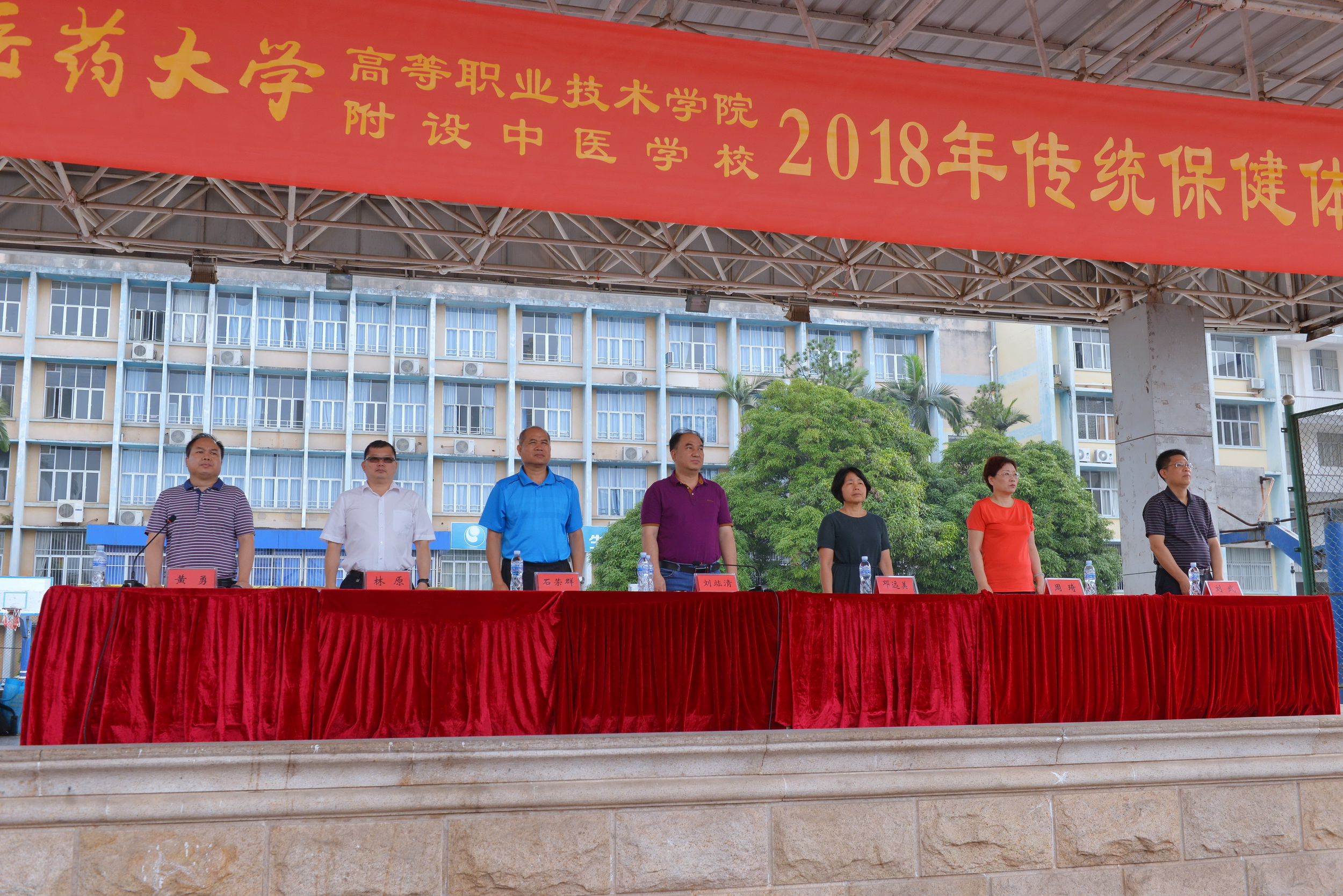 为进一步提高学生身体素质,积极响应国家全民健身政策,弘扬中华民族传统体育文化,培养师生健康养生意识,高职院、附设中医学校于5月12日在明秀校区举行2018年传统保健运动会。大学体育部石荣群副主任、高职院、附设中医学校领导班子全体成员出席了开幕式,开幕式由高职院、附设中医学校副院(校)长黄勇主持。