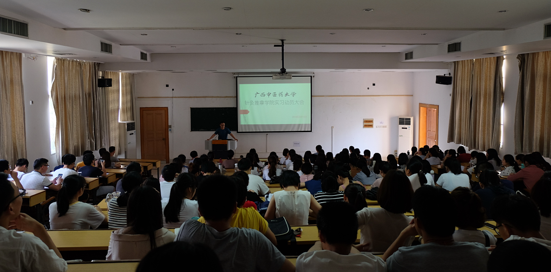 5月15日下午,针灸推拿学院在明秀校区西梯三教室召开2018年实习动员大会。针灸推拿学院党总支书记蒋闽义老师、学院部分教师代表以及2014级针灸推拿学专业全体学生参加了大会,会议由2014级辅导员潘立老师主持。