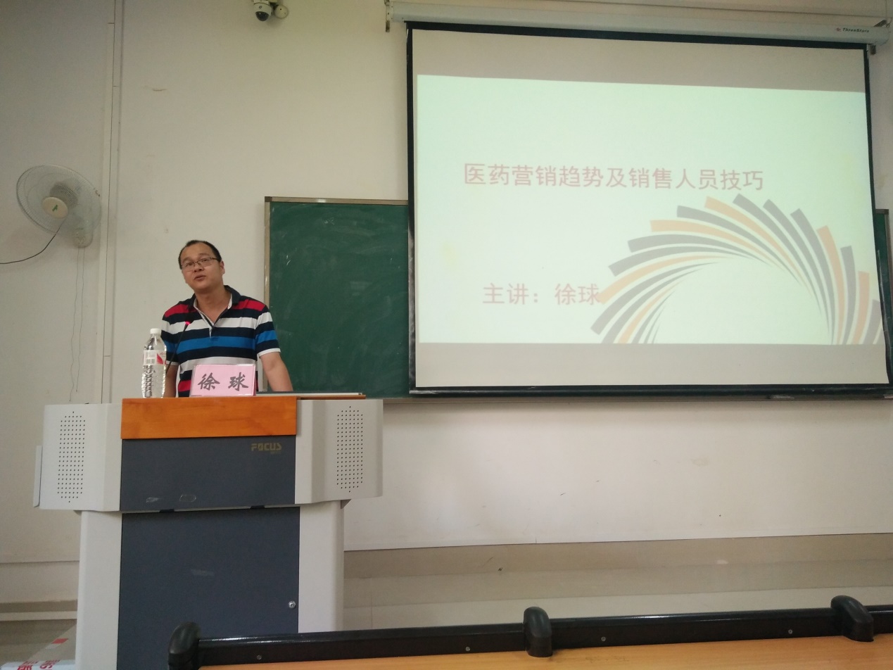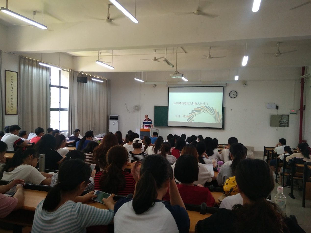交流会上,徐球总经理从医药营销趋势及销售人员技巧出发,多角度向同学们分享了自己的工作经验、所见所闻及所感所悟。同学们都很认真的倾听徐球总经理的分享,收获颇丰。最后的交流环节同学们积极向徐球总经理提问,气氛活跃。