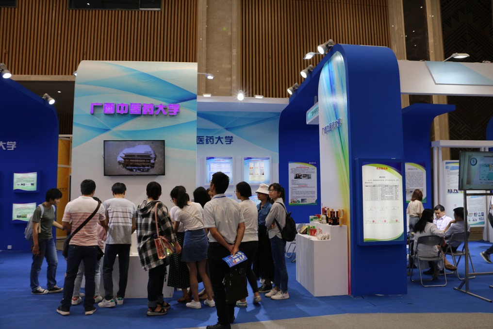 同学们怀揣着激动与兴奋的心情迈进了展馆,在点点体育科研创新发明成果展区流连忘返,认真观看展厅里的陈列的系列产品:百年乐药酒、扶芳藤口服液等,同学们纷纷表示自豪感、自信感油然而生。中药学专业的同学还在广西道地药材展厅充当起临时讲解员,给来往参观的人员讲解中药材的功能主治与疗效。