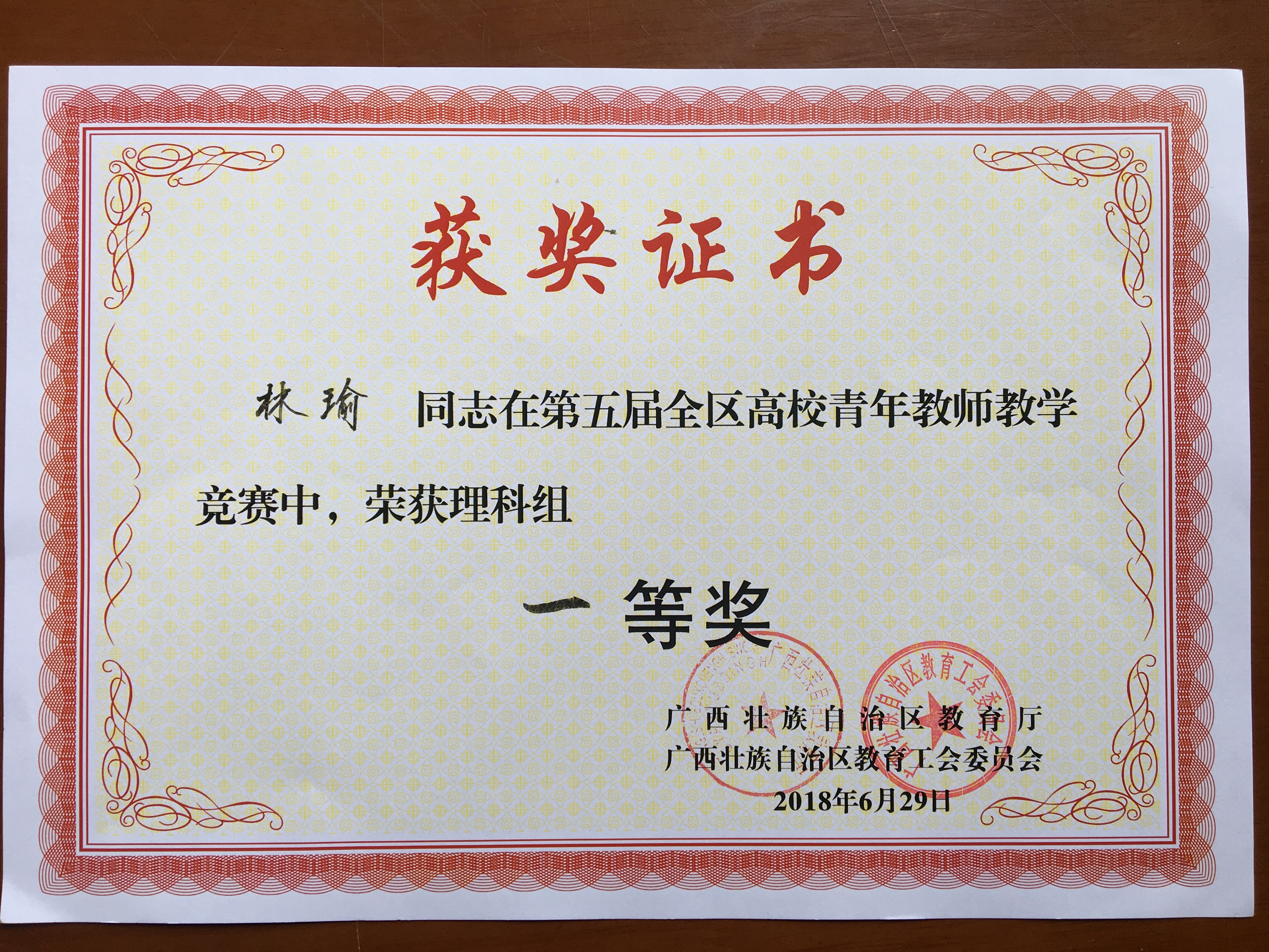 【喜讯】药学院林瑜讲师荣获第五届广西高校青年教师教学竞赛理科组第一名