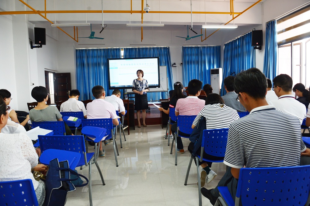 培训会上,韩琦针对试卷分析系统从系统登录-课程建设-试卷建立-组卷管理-成绩导入-审核等各个环节进行了详细的讲解和操作演示。同时,针对老师们在使用过程当中出现和存在的问题进行了解答。老师们纷纷表示经过此次培训很快掌握了试卷分析系统。