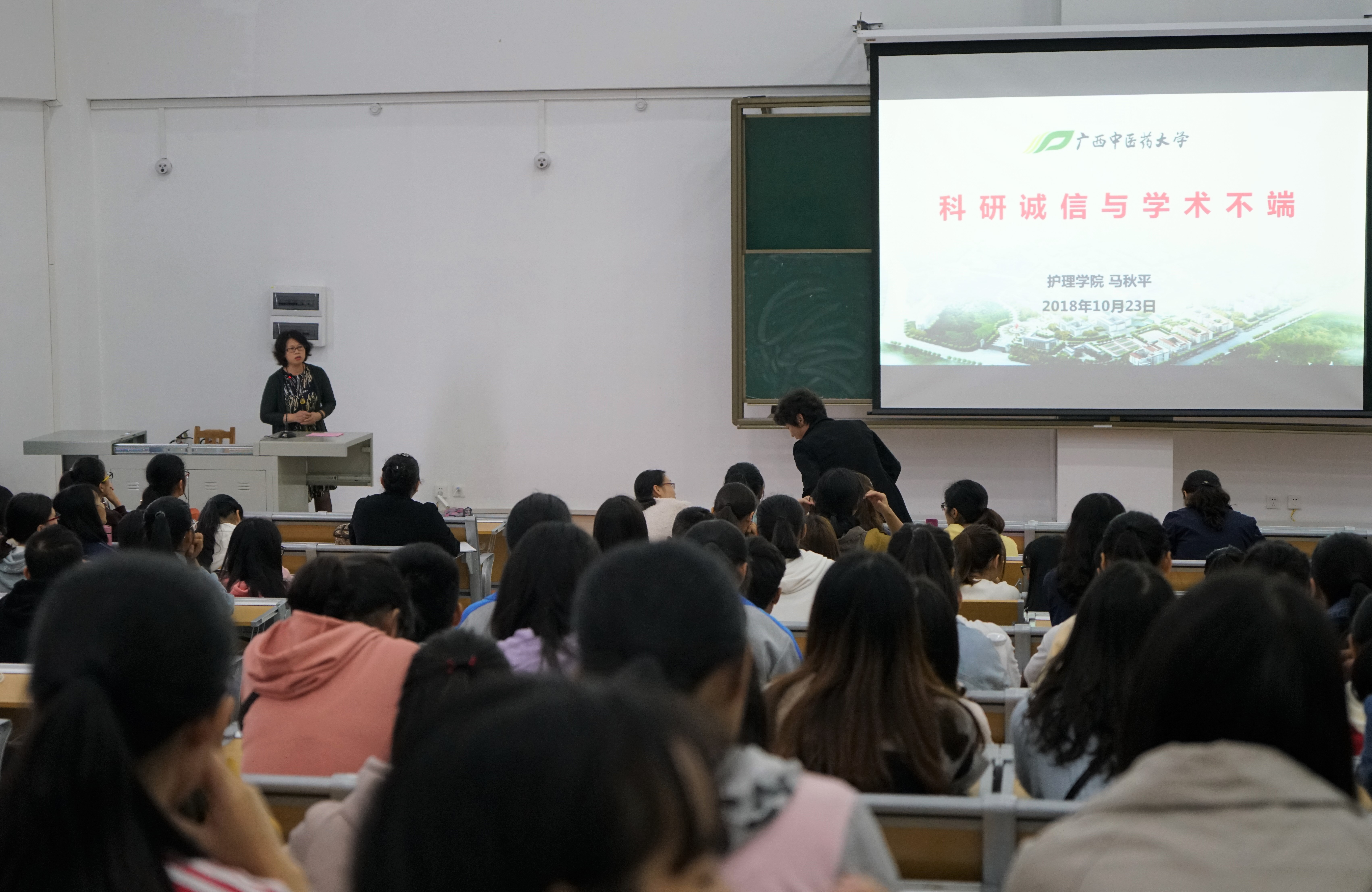 10月23日下午,护理学院在仙葫校区自诚楼B401举办了科研诚信与学术道德专题讲座。护理学院副院长马秋平应邀做题为“科研诚信与学术不端”专题讲座。护理学院全体教职工、全体护理硕士专业学位研究生及部分本科生代表共245人参加了本次学习。本次会议由护理学院党委书记、院长吴彬主持。